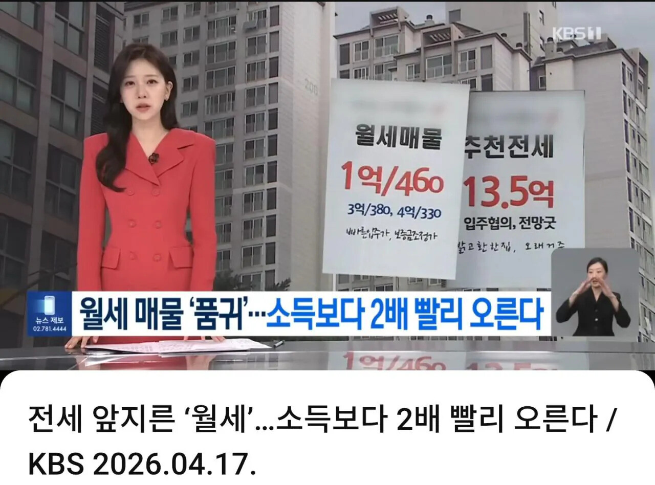 전세 앞지른 ‘월세’…소득보다 2배 빨리 오른다