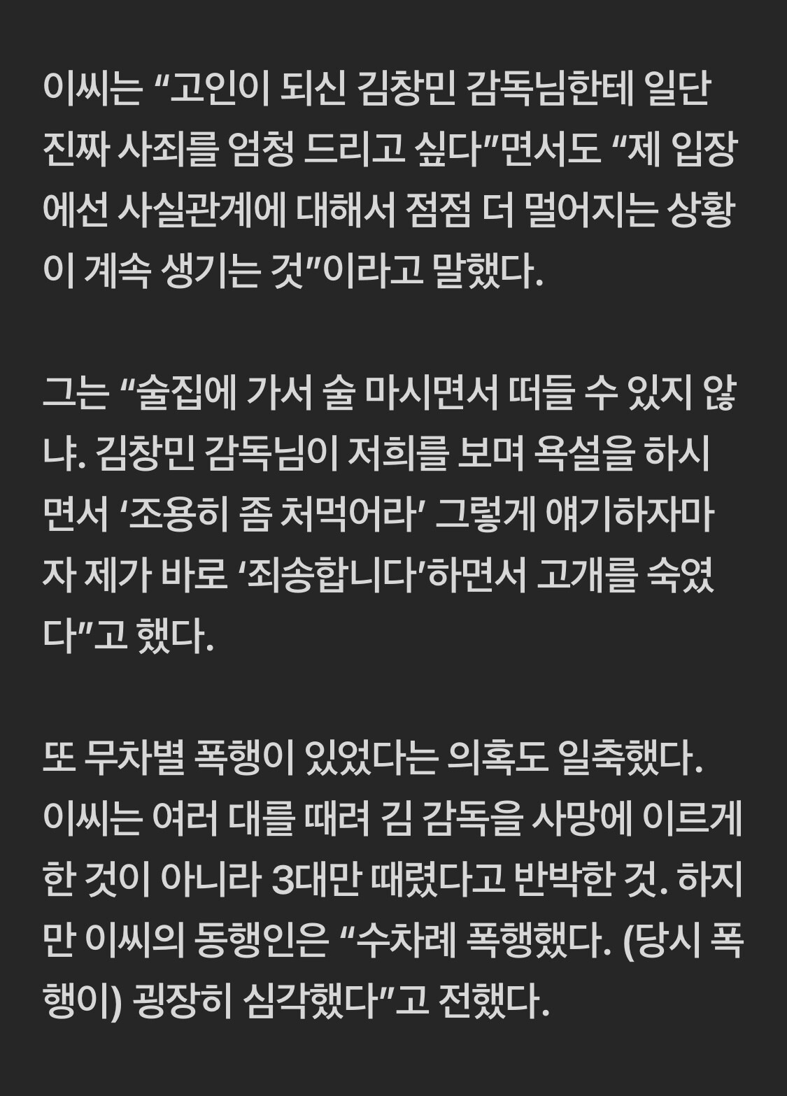 "3대만 때렸다" 억울하다는 고 김창민 감독 피의자