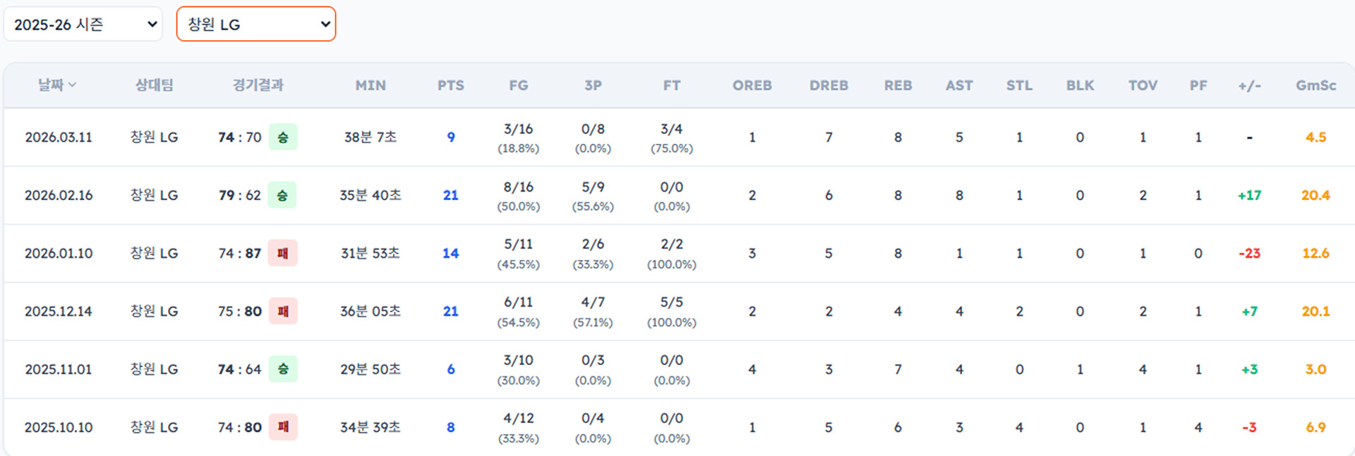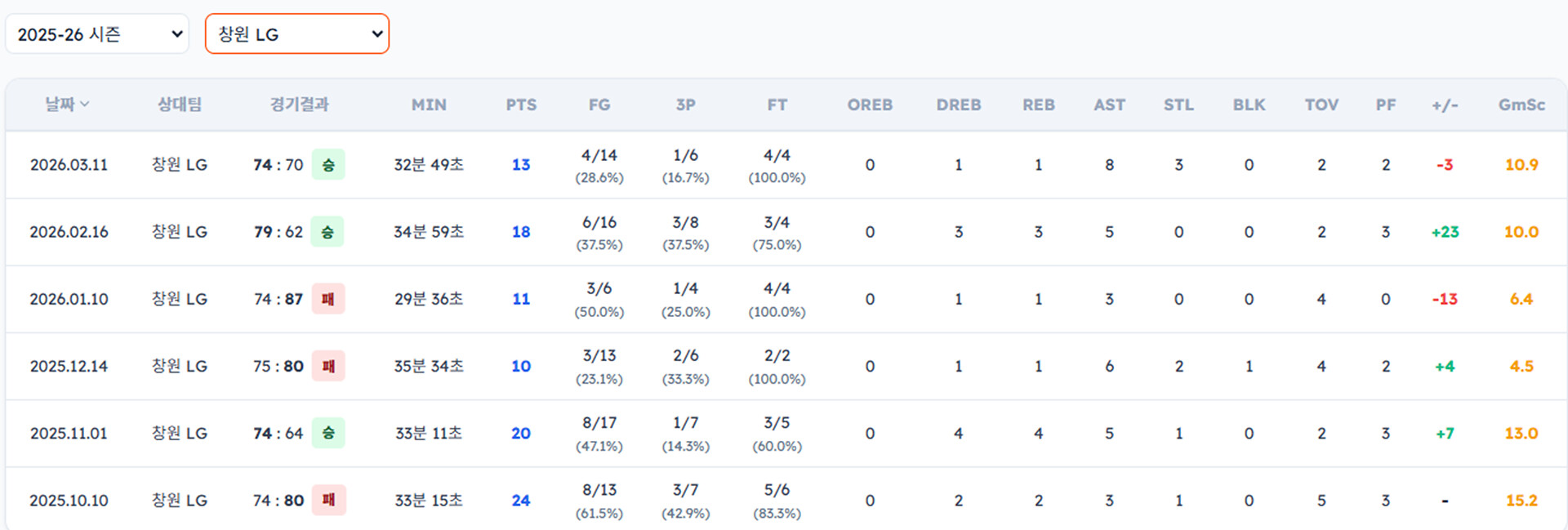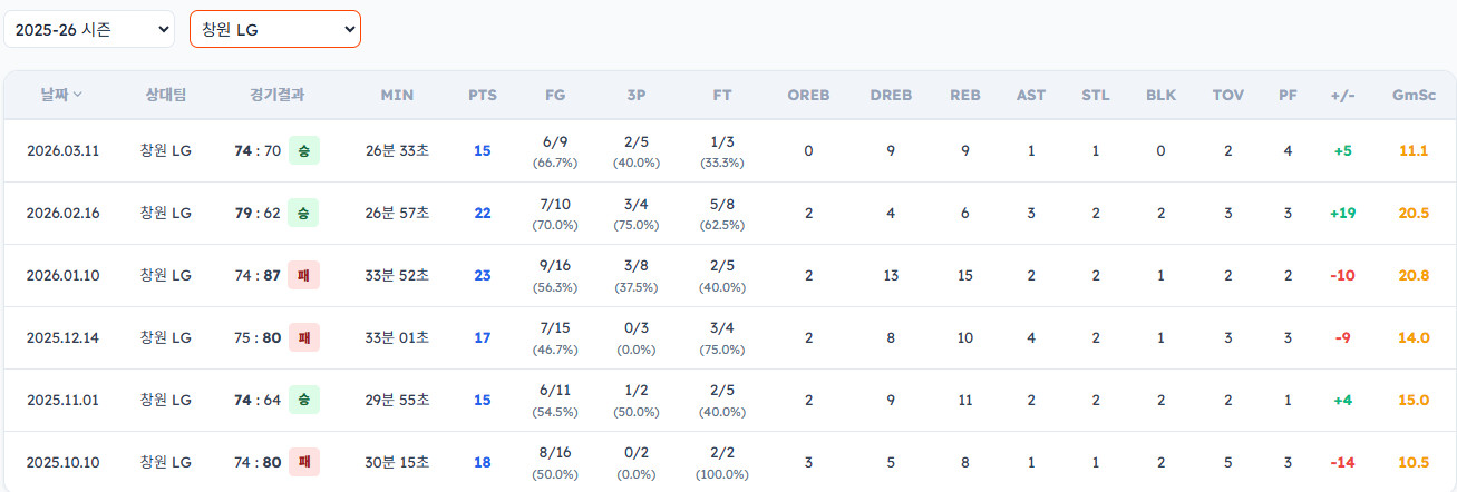 LG 선수들이 소노 상대로 성적이 그렇게 좋진 않군요..?