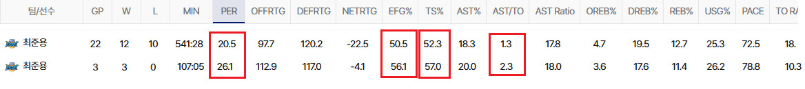 -Ast/To(어시/턴오버비율) : 1.3->2.3으로