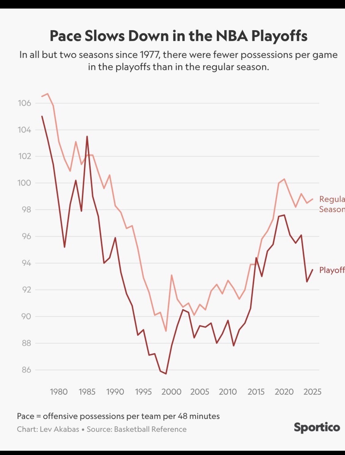 (1) 예전보다 정규시즌과 더 큰 격차로 페이스가 느려지는 플레이오프