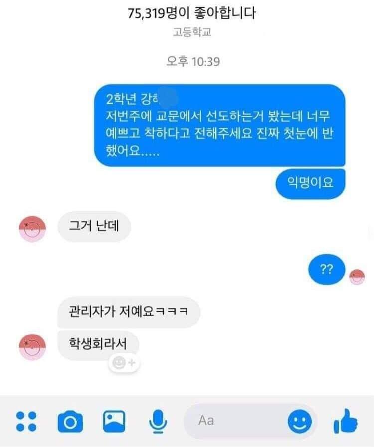 상대방이랑 보낸사람이 다 아이즈원 로고를 하고 있네요 이름도 강혜원 가린거 같은데 팬픽 같은거 아닐까요 |
