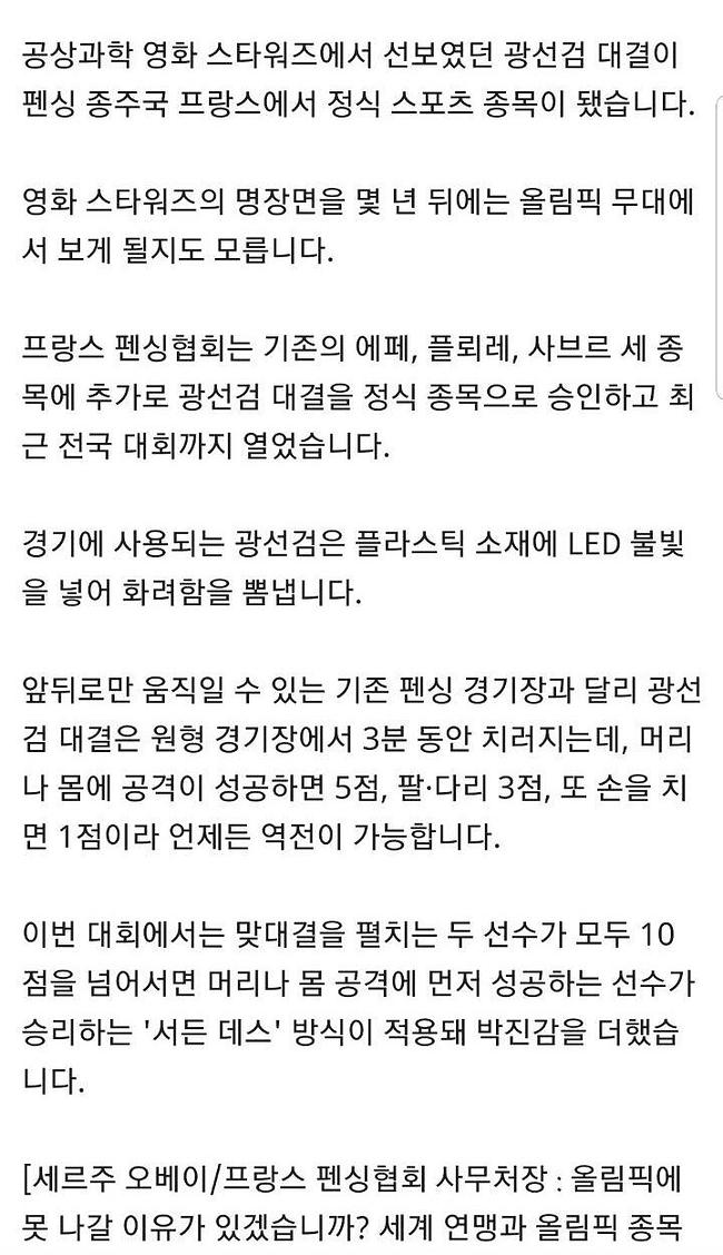 오 정식 종목으로 채택된다면 인기 진짜 많을 것 같네요