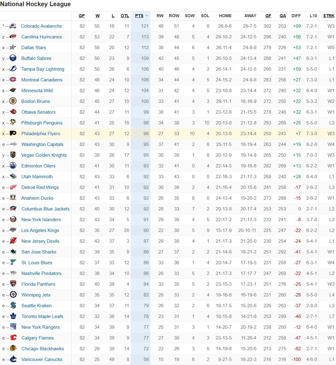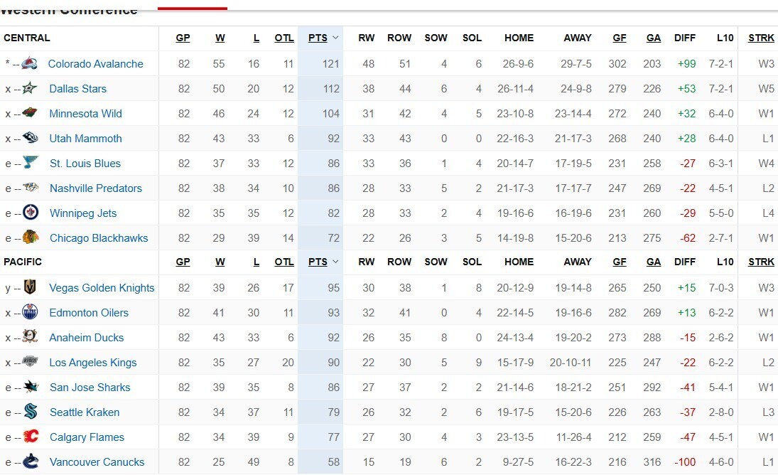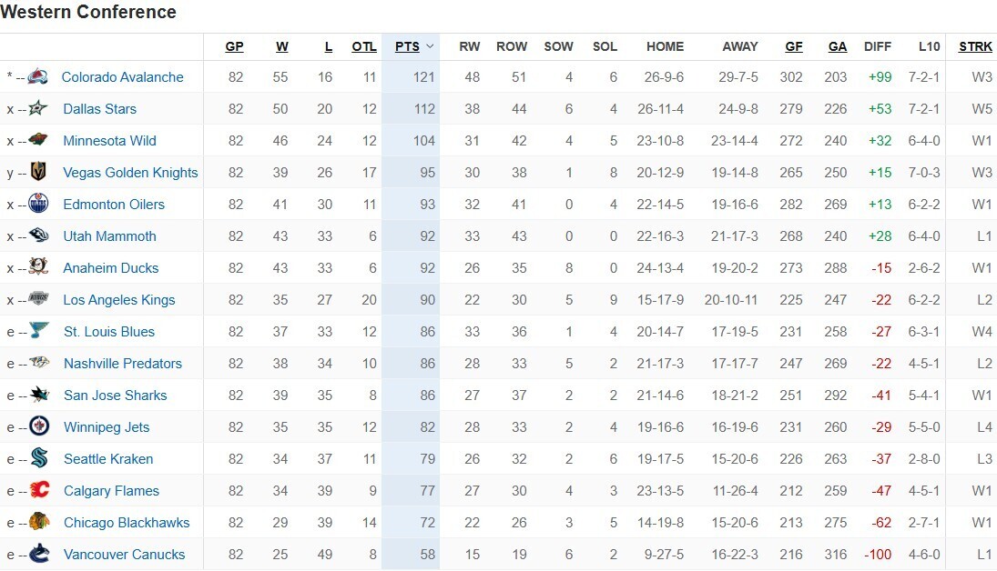2025-26시즌 NHL 정규시즌 최종순위 & 스탠리 컵 플레이오프 대진표