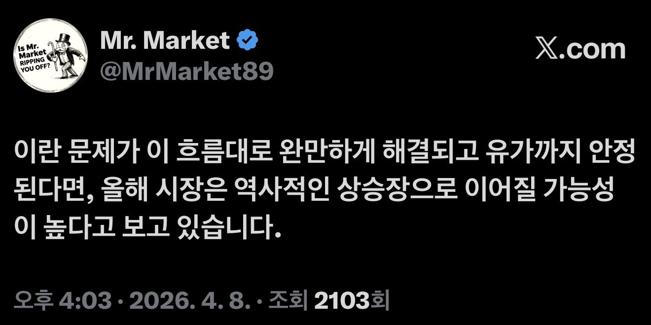 이 기간 동안 지수는 약 16.8%에 달하는 가파른 상승폭을 나타냈는데, 이는 지난 3월 30일 기록한 저점에서 신고가에 도달하기까지 불과 2주가 채 걸리지 않은 이례적인 회복세입니다.