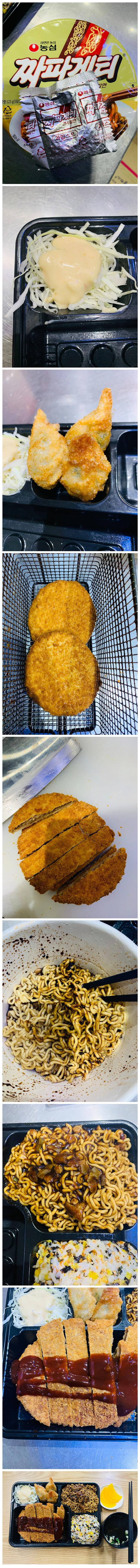 퇴근전에 뭐먹을지 고민중이었는데.. 돈까스랑 짜파게티와 만두로 정했습니다.