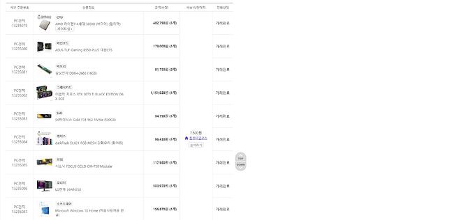 보드도 아수스 터프 보드 인기많은 보드고요. 유일하게 SSD용량만 좀 아쉬운데..