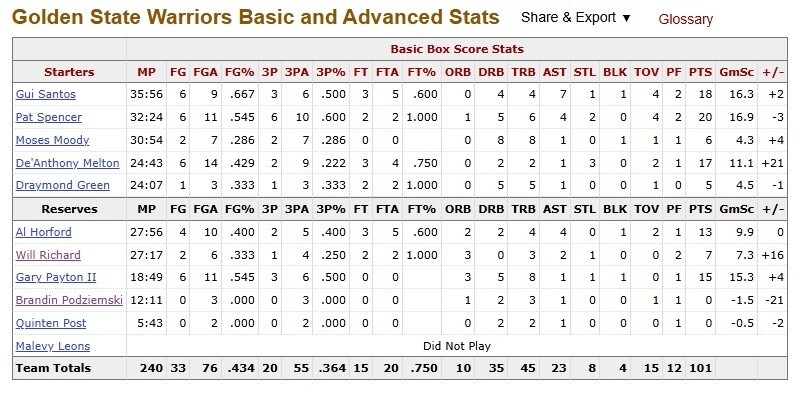 기산토스 - 팻스펜서 - 모제스무디 - 디앤서니멜튼 - 드레이먼드 그린 - 알호포드