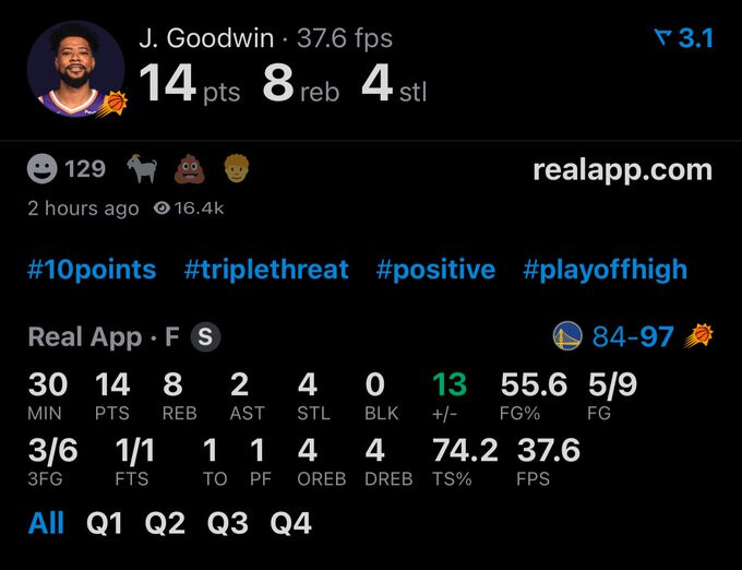 OKC를 상대로 지난 6경기 동안의 부커 스탯