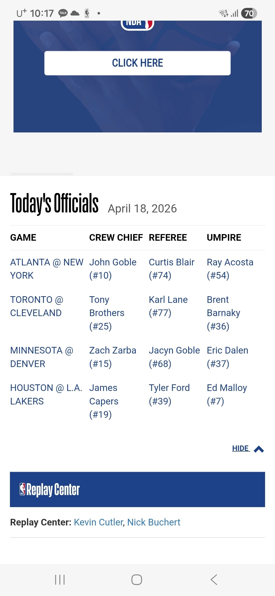 토론토vs클리블랜드: 토니 브라더스, 칼 레인, 브렌트 배너키