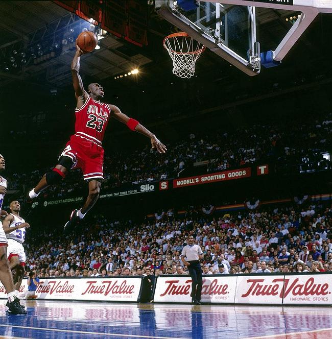 "저 관중석에 아버지와 아들은 오늘이 마이클조던을 본 첫번째 날 혹은 유일한 날일 수 있다."