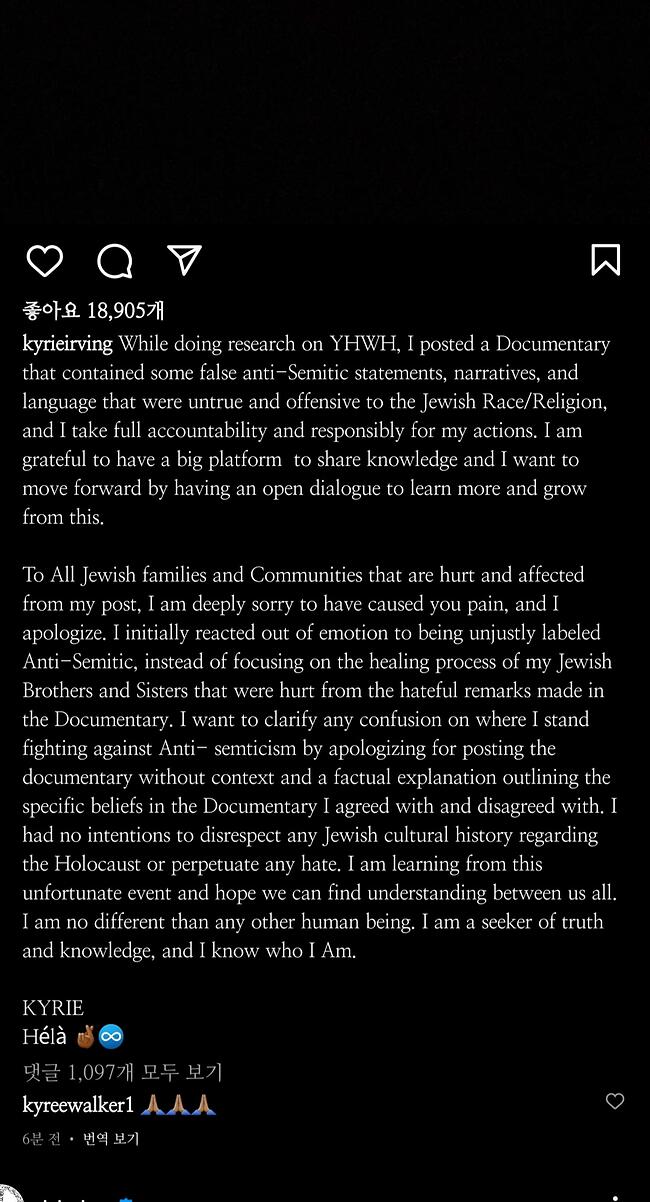 일단 사과를 했으니 퇴출은 안당하겠지만 브루클린 구단은 어빙 이제 꼴도 보기 싫을거 같고